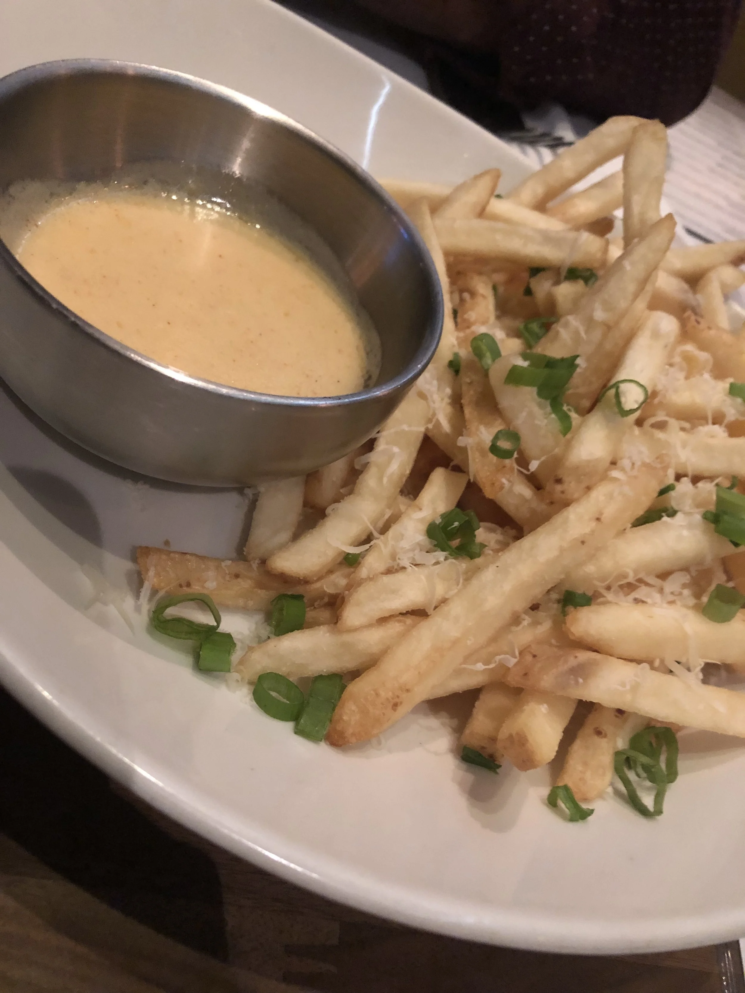 NEXT ON THE DOCKET WAS A SIDE OF FRIES! YALL KNOW WHAT FRIES ARE DUH! BUT YOU DO NOT KNOW WHAT SAUCE THAT IS. IT IS CHEESE SAUCE. FRIES TOSSED IN TRUFFLE OIL AND SPRINKLED WITH PARMESAN. BEST THING SINCE SLICE BREAD. OH I’LL BE BACK. I AM COMING FOR YA!
