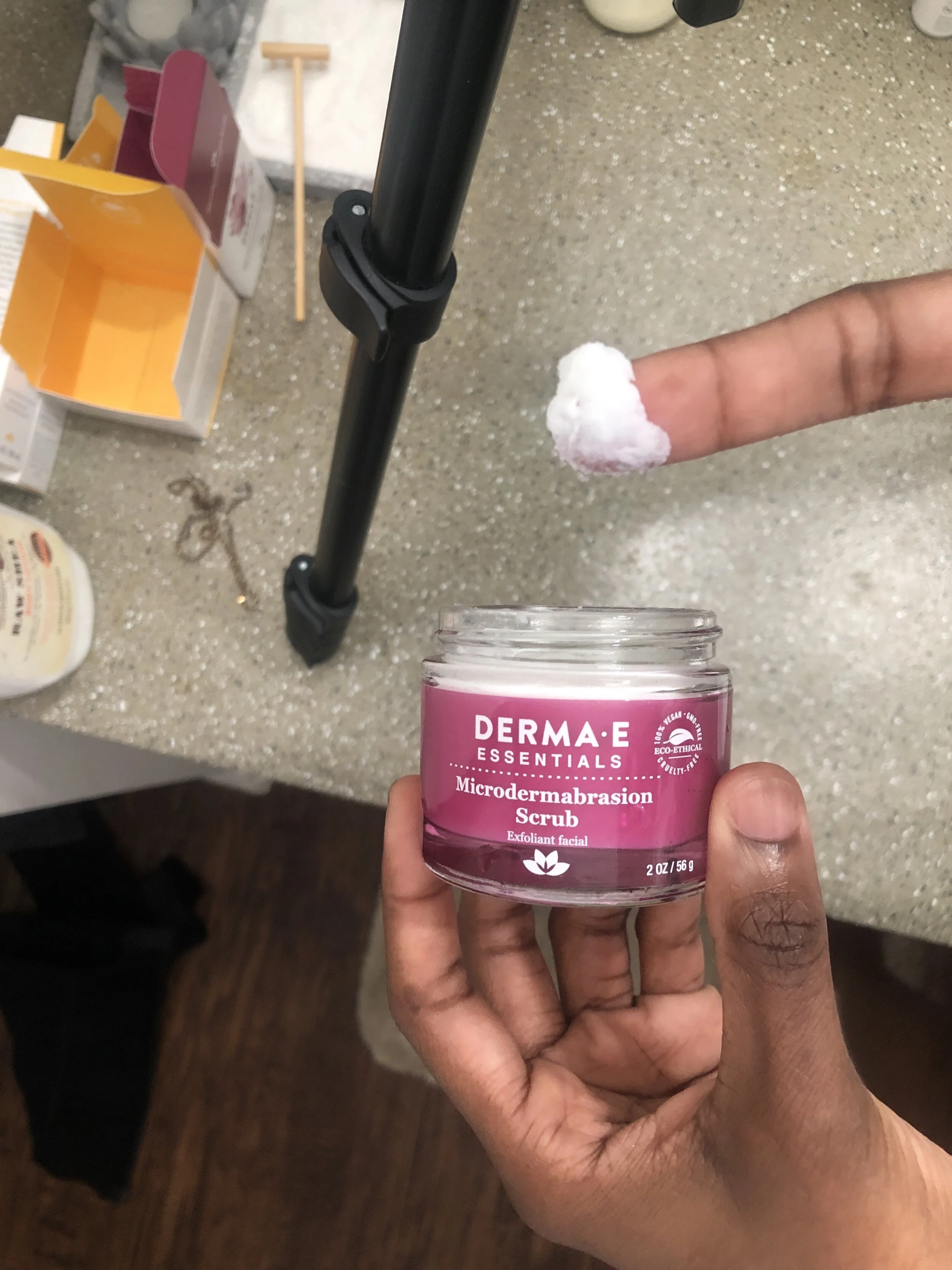 Exfoliating is new too me! I never saw it as a need! But exfoliate helps remove that dead skin layer with the dead sea salt, unclogs pores, even skin tones, blocks negative energies from entering your aura, buffs away dull skin, acne scars and helps other skincare products penetrate deeper. Derma-E Microdermabrasion Scrub does all that and is a “ I don’t want no scrub repellent”, mark my words!!